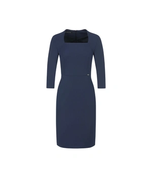 DARK BLUE BUSINESS DRESS WITH SQUARE NECKLINE