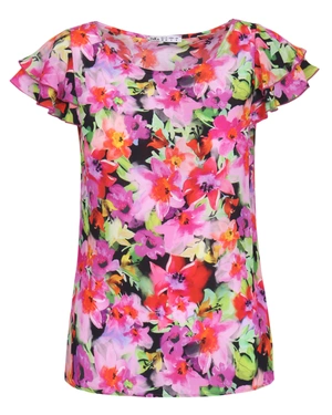 Model with short sleeves and a round neckline, with a regular fit and a floral print, the fabric is light and comfortable to wear. Can be combined with a matching skirt from the collection.