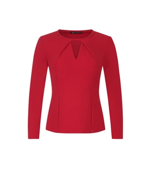 RED GABARDINE BLOUSE WITH TEARDROP NECKLINE CUT-OUT