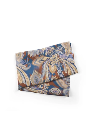 Classic winter scarf with paisley motifs on a dark blue background, containing wool in its composition. The wool used is of guaranteed origin, mulesing-free, and certified according to international standards that ensure sustainable sourcing and ethical practices.