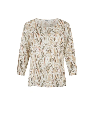 VISCOSE BLOUSE WITH 3/4 SLEEVES AND A STYLIZED PATTERN IN PASTEL EARTH TONES