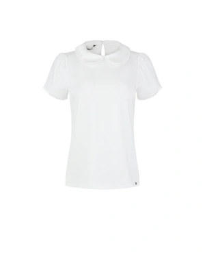 Elegant white short sleeve t-shirt with a regular fit and rounded collar; the lyocell provides a silky sheen to complement the softness of the cotton, making its classic cut a versatile addition to everyday wear.