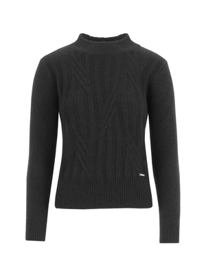 A crew neck model with long sleeves and a regular fit, featuring cable knits.