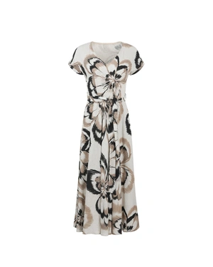 DUGA LETNJA HALJINA SA CVETNIM PRINTOM U BEŽ TONOVIMA