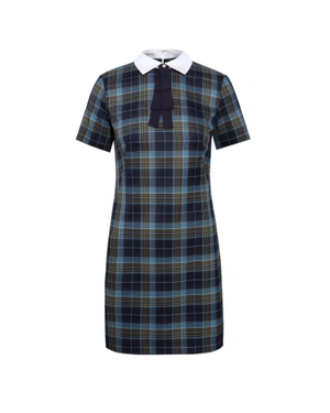 Haljina iznad kolena, kratkih rukava I kontrastnom belom kragnom sa detaljima od trake.