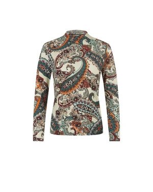 Deres- majica dugih rukava sa visokim izrezom i uobičajenim krojem, sa indijskim printom i visokim sadržajem liocela, materijal je rastegljiv.