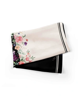 Mrežasta marama, 70x70 cm, od finog šifona u dve kontrastne boje, objedinjena elegantnim motivom šarenog prolećnog cveća