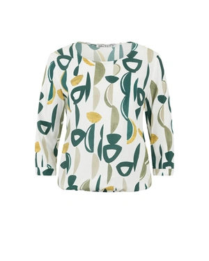 Bluza okruglog dekoltea, rukava 7/8 sa manžetnama, pravilnog kroja i elastičnog pojasa u zeleno-belim tonovima. Tkanina je 100% viskoza.